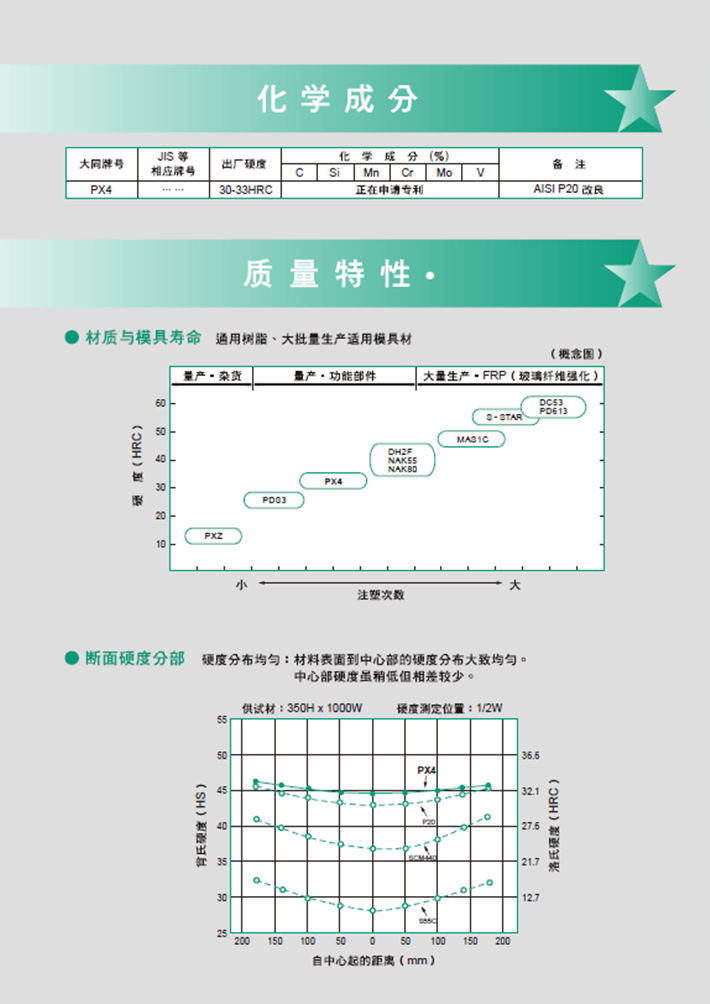 日本大同PX4塑料模具鋼:通用預(yù)硬鋼(30HRC)